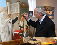 He has produced paintings depicting key religious and political figures and all aspects of Jewish family life. In addition, he has painted a wide selection of secular subjects, including still life, metropolitan landscapes and portraits of celebrities and monarchs.